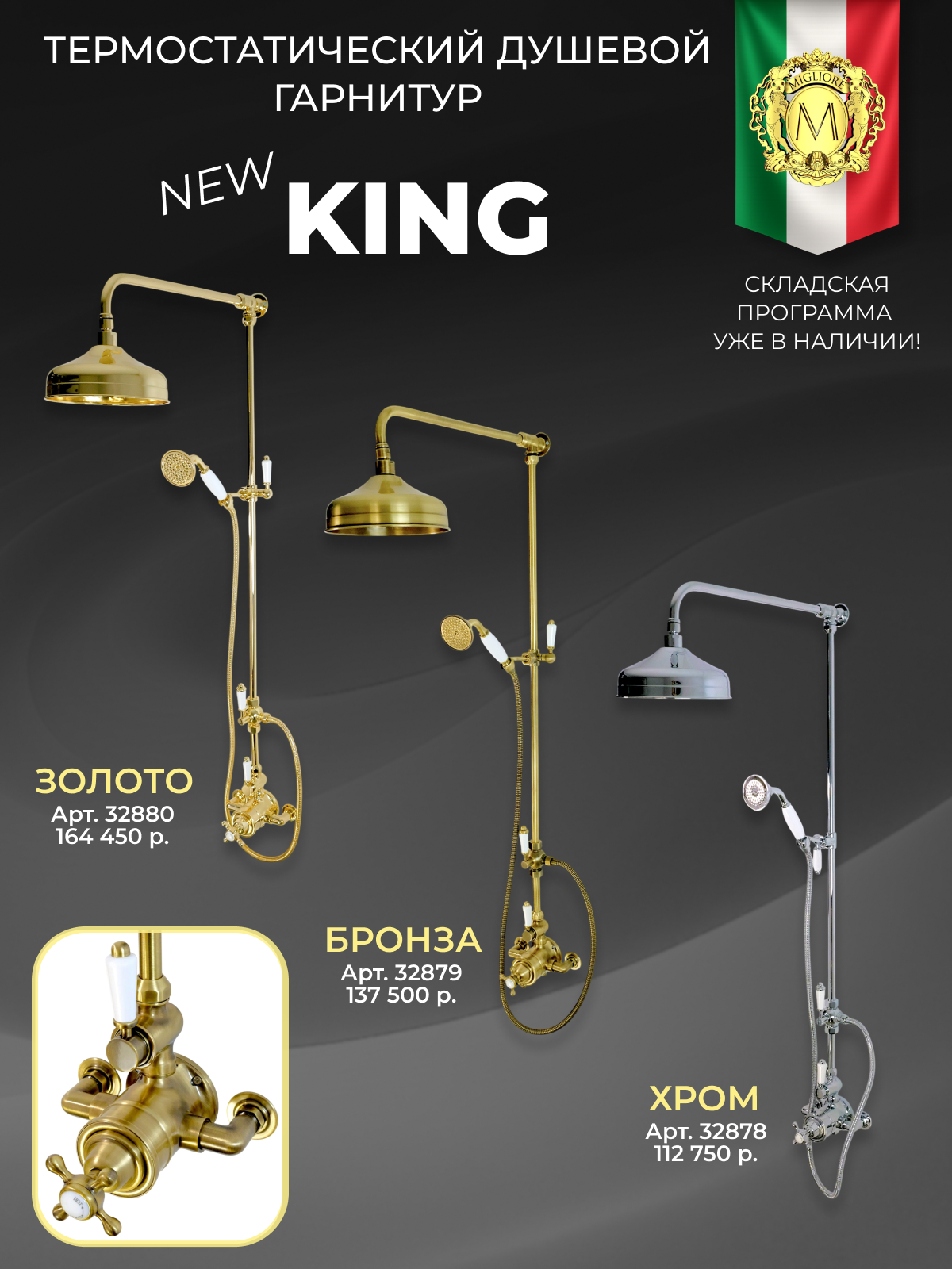 Новинка: KING Термостатический настенный душевой гарнитур