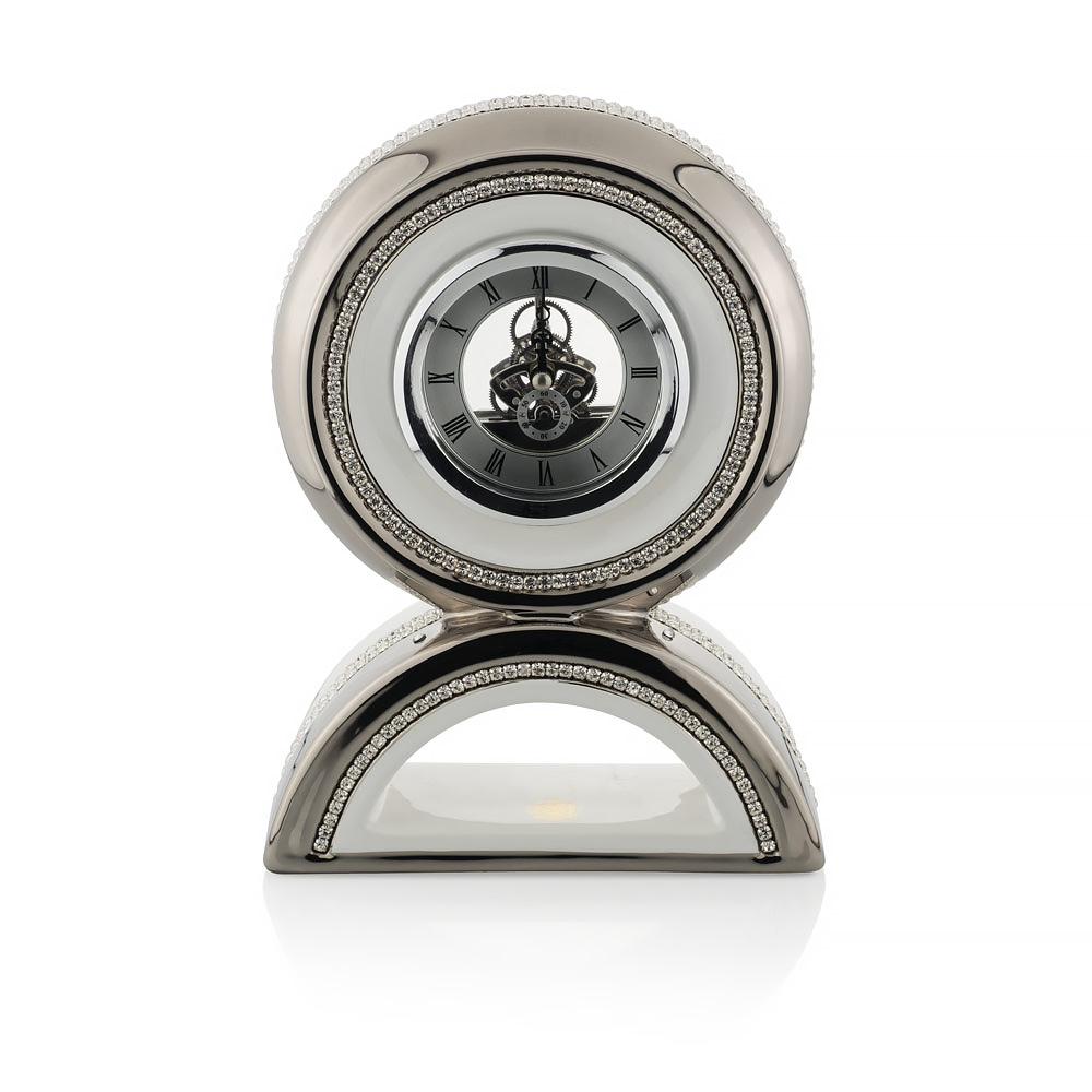 DUBAI Orologio Da Tavolo 20xh27,5 cm., ceramica, Colore Bianco, Decorazione platino, cristallo