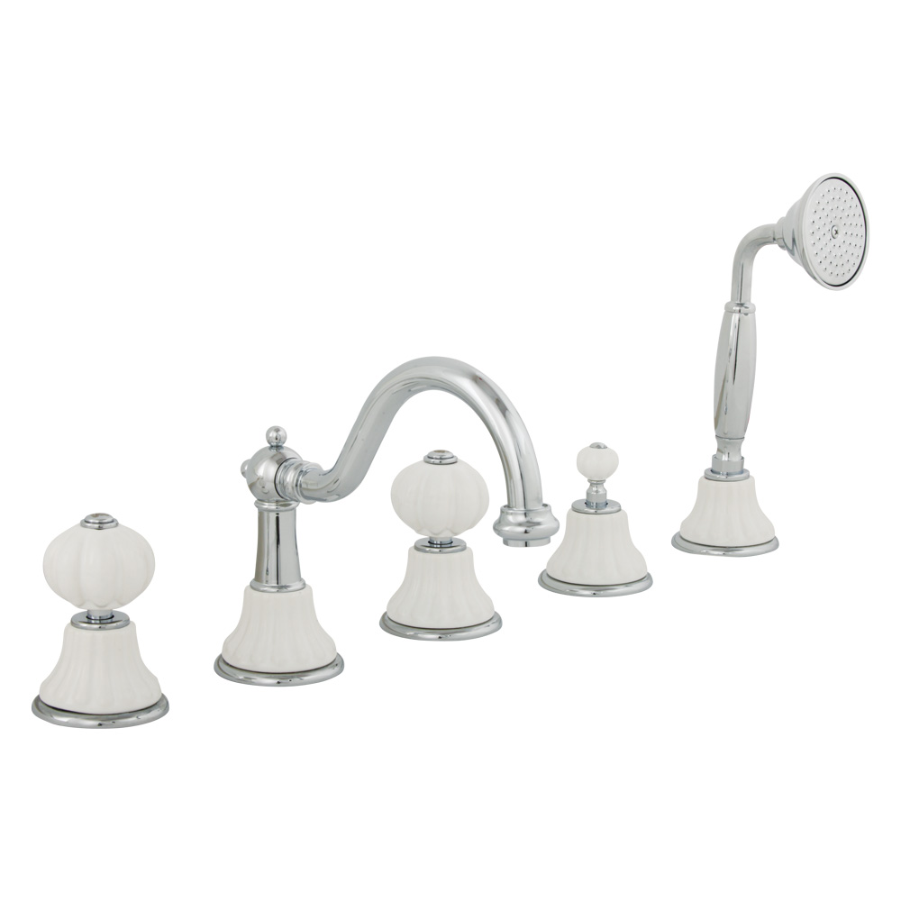 Batteria bordo vasca con doccia estraibile, Ceramica, Olivia